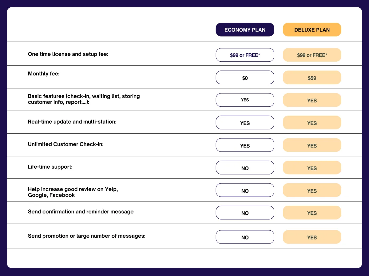 *$99 license and setup fee will be waived if you are using our merchant service (máy cà thẻ) or if you are using our POS System (Nailsolution); NailsolutionPlus.
