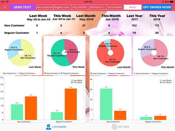 - Quản lý và cung cấp các báo cáo về tình hình khách hàng của tiệm: new customer, regular customer, long time no see customer ... giúp chủ đưa ra các chiến lược kinh doanh hợp lý.