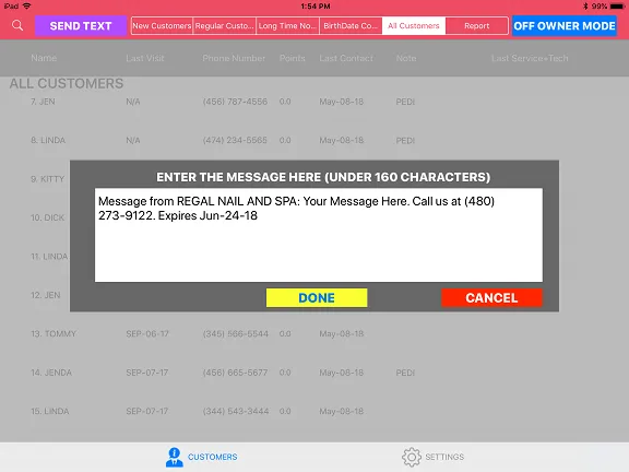 - Gởi tin nhắn promotion cho khách theo ý chủ tiệm nhằm tăng lượng khách, giữ khách, kéo khách bỏ đi về lại tiệm, và cạnh tranh tốt hơn với các tiệm lân cận.